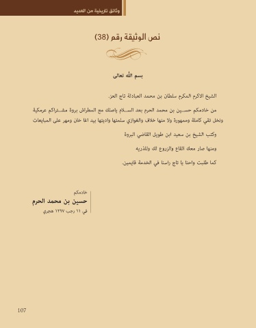 ﻣﻦ ﺧﺎدﻣﻜﻢ ﺣﺴــﻴﻦ ﺑﻦ ﻣﺤﻤﺪ اﻟﺤﺮم ﺑﻌﺪ اﻟﺴــﻼم ﻳﺎﺻﻠﻚ ﻣﻊ اﻟﻤﻄﺮاش ﺑﺮوة ﻣﺸــﺘﺮاﻛﻢ ﻋﺮﻣﻜﻴﺔ