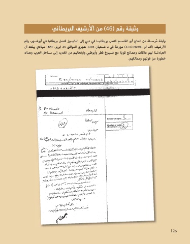 وﺛﻴﻘﺔ ُﻣﺮﺳــﻠﺔ ﻣﻦ اﻟﺤﺎج أﺑﻮ اﻟﻘﺎﺳــﻢ ﻗﻨﺼﻞ ﺑﺮﻳﻄﺎﻧﻴــﺎ ﻓﻲ دﺑﻲ إﻟﻰ اﻟﺒﺎﻟﻴــﻮز ﻗﻨﺼﻞ ﺑﺮﻳﻄﺎﻧﻴﺎ ﻓﻲ أﺑﻮﺷــﻬﺮ ،رﻗﻢ
