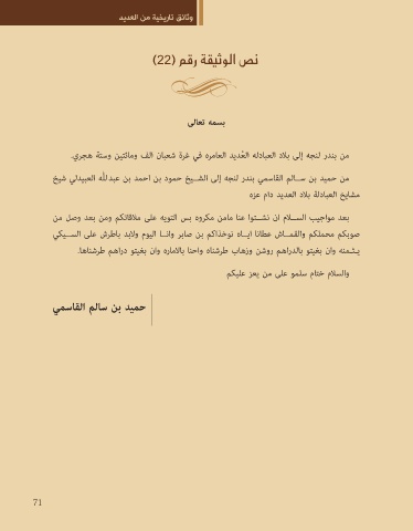 ﻣﻦ ﺣﻤﻴﺪ ﺑﻦ ﺳــﺎﻟﻢ اﻟﻘﺎﺳﻤﻲ ﺑﻨﺪر ﻟﻨﺠﻪ إﻟﻰ اﻟﺸــﻴﺦ ﺣﻤﻮد ﺑﻦ اﺣﻤﺪ ﺑﻦ ﻋﺒﺪ ﻟﻠﱣﻪ اﻟﻌﺒﻴﺪﻟﻲ ﺷﻴﺦ