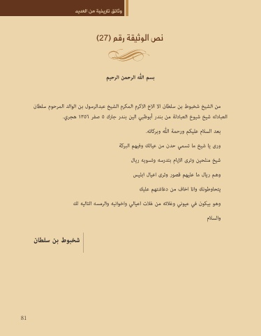 ﻣﻦ اﻟﺸﻴﺦ ﺷﺨﺒﻮط ﺑﻦ ﺳﻠﻄﺎن اﻻ اﻻخ اﻻﻛﺮم اﻟﻤﻜﺮم اﻟﺸﻴﺦ ﻋﺒﺪاﻟﺮﺳﻮل ﺑﻦ اﻟﻮاﻟﺪ اﻟﻤﺮﺣﻮم ﺳﻠﻄﺎن